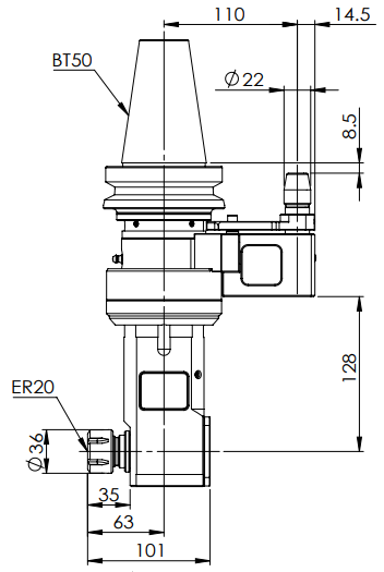 ◎?BT50-ER20 90° Angle Head-Longer (AHD Type)